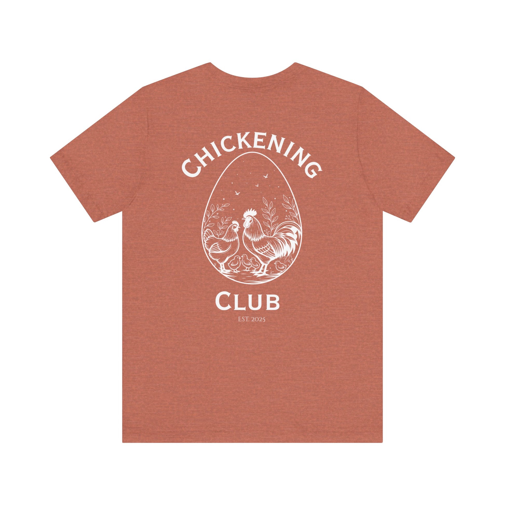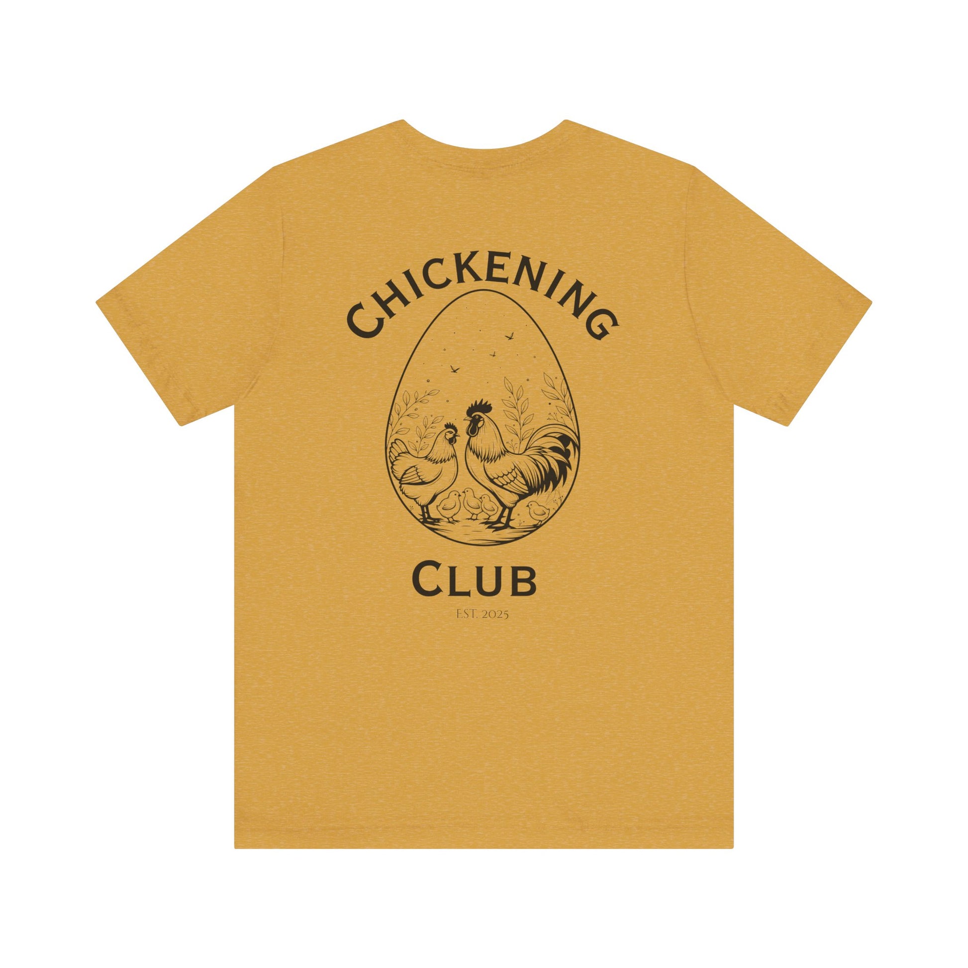 Ready to cluck up your style game? Meet the official Chickening Club: est 2025 tee – where casual comfort meets quirky cool. This isn't just a shirt; it's your membership badge to a lifestyle that embraces individuality with a wink and a feather.
