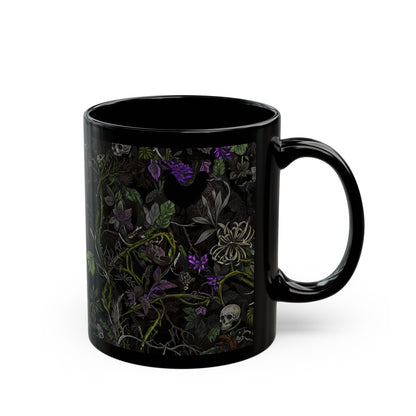 Some mugs whisper sweet nothings. Ours? It's plotting something utterly brilliant, just like you. Introducing the "Nocturne Bloom" Black Ceramic Mug – a stunning vessel for those who appreciate their daily brew with a generous dash of dark botanical allure and a hint of beautiful menace. Adorned with our intricate "Nocturne Bloom" design, it’s a dense, entangled tapestry of moon-kissed flora, barely glimpsed bird skulls, and elegant, almost watchful shadows. This isn't just a mug; it's a piece of functional art that whispers tales of forgotten gardens and clandestine rituals.