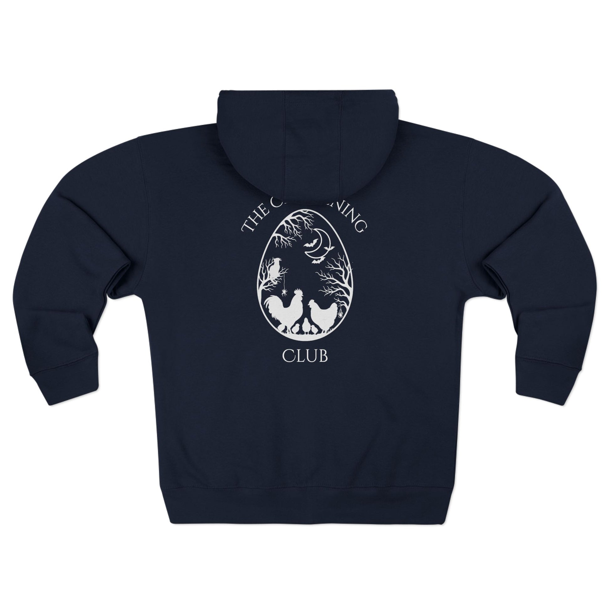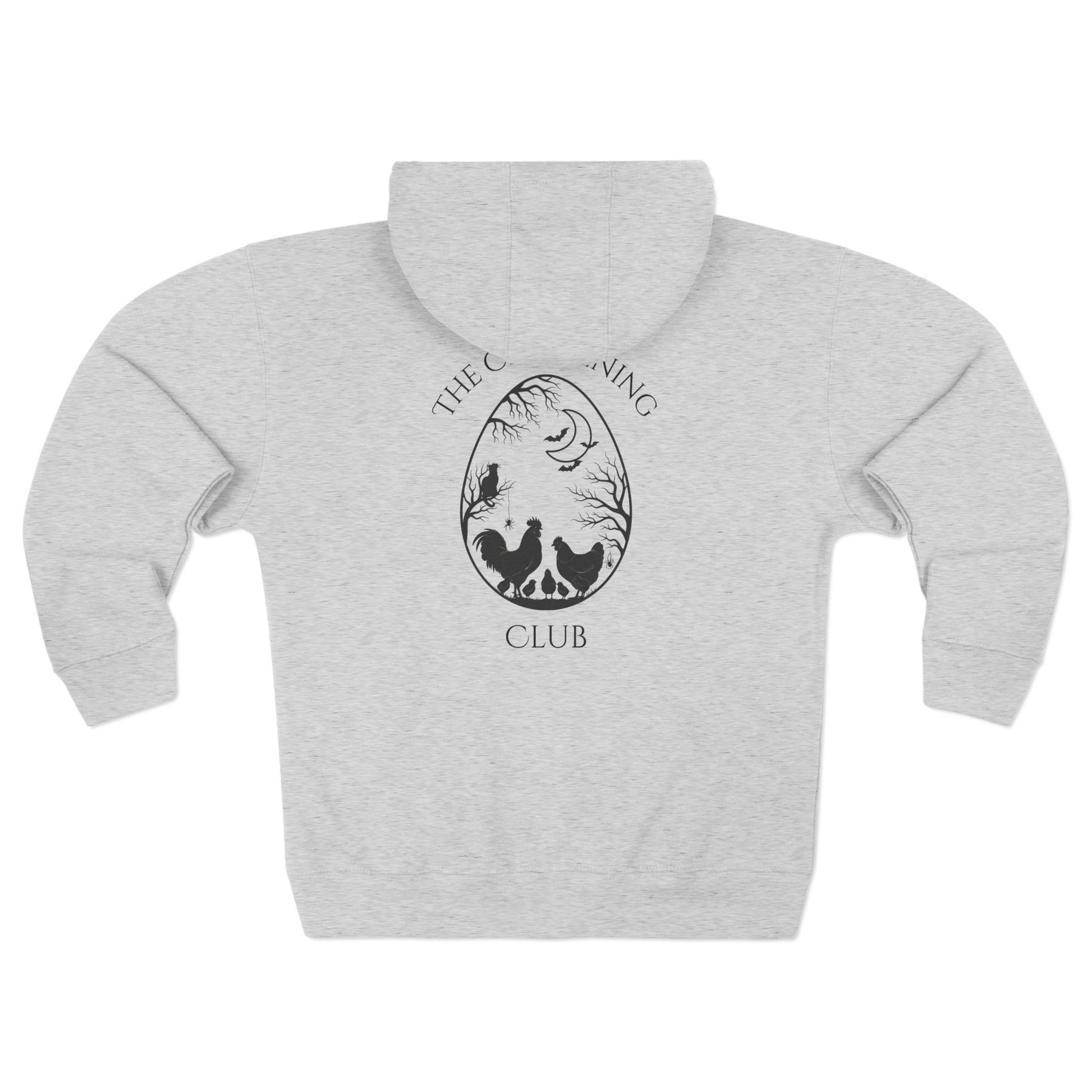 Cozy meets cryptic in this Halloween edition of The Chickening Club zip hoodie — where comfort wraps you like a warm spell and the graphics whisper, “Yes, I raise chickens. Yes, I celebrate spooky season. Yes, I look good doing both.”